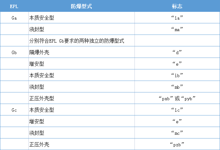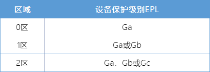 根據危險場所分類,防爆區域與適用的設備保護級別EPL關系如下: